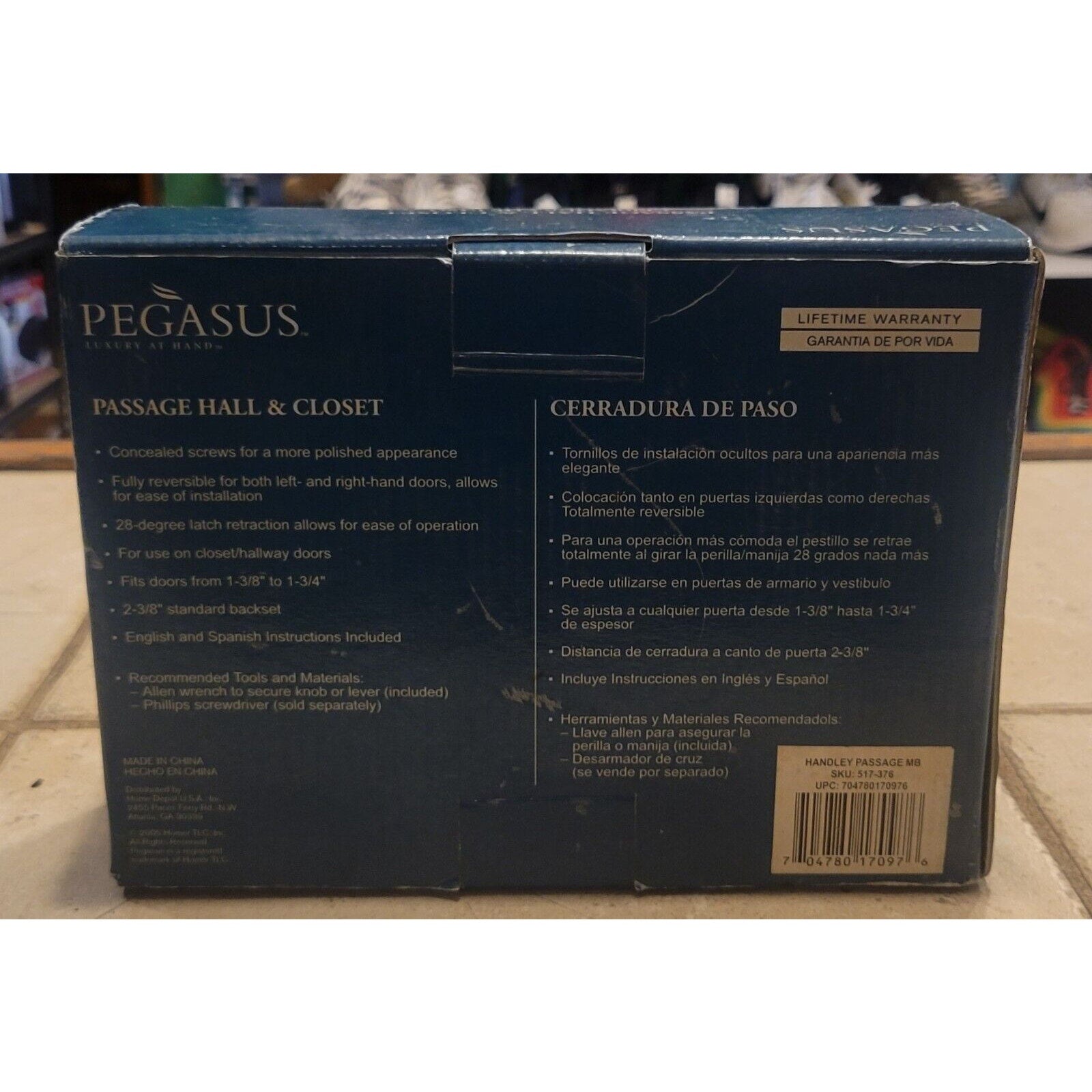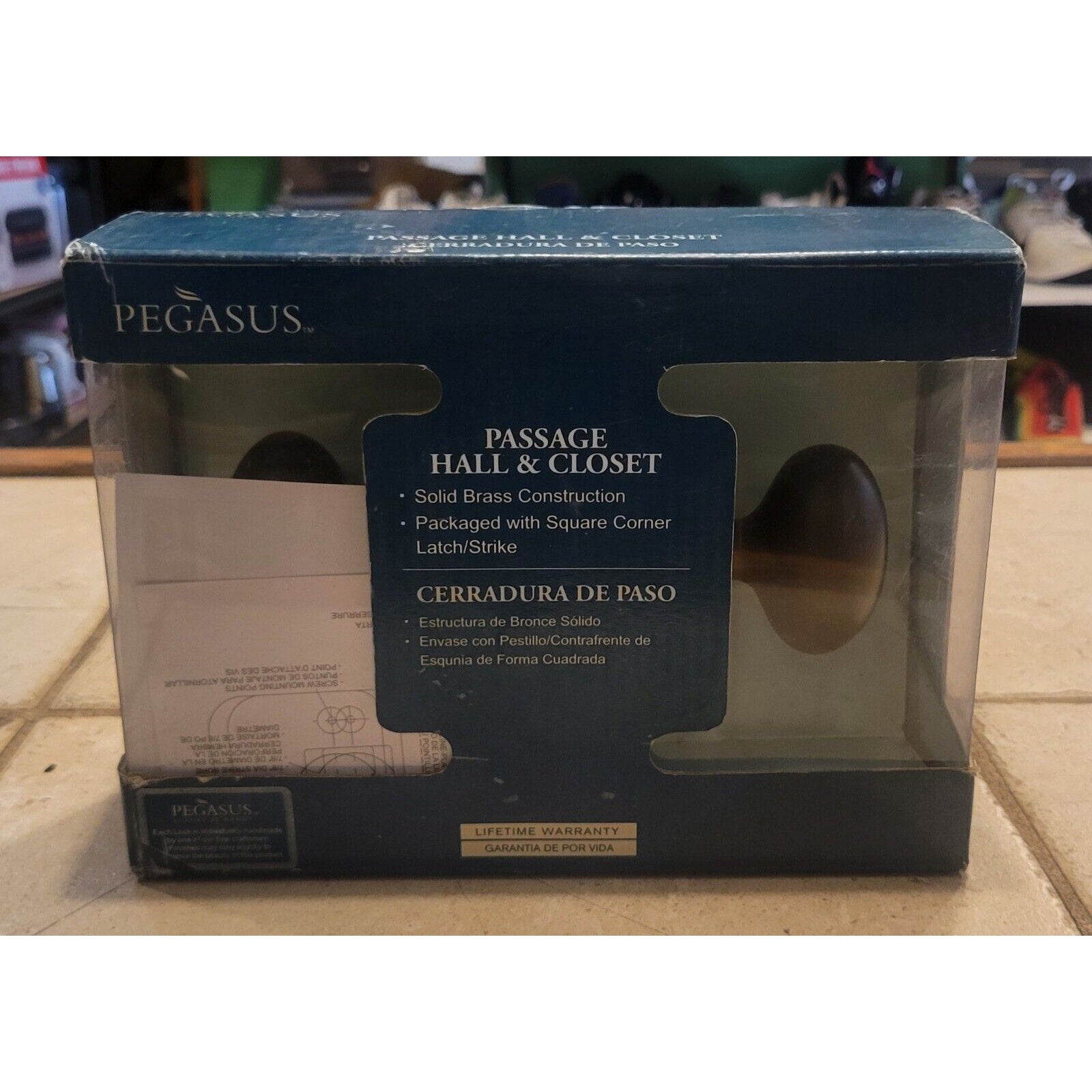 This is a brand new Pegasus passage hall closet door handle set with a matte bronze finish made of solid brass. It comes with all the necessary hardware and is suitable for use in passages, closet doors, and halls. The set includes a lockset, making it perfect for added security and privacy. The finish is stylish and elegant, adding a touch of class to your home. This handle set is suitable for any home renovation or DIY project.