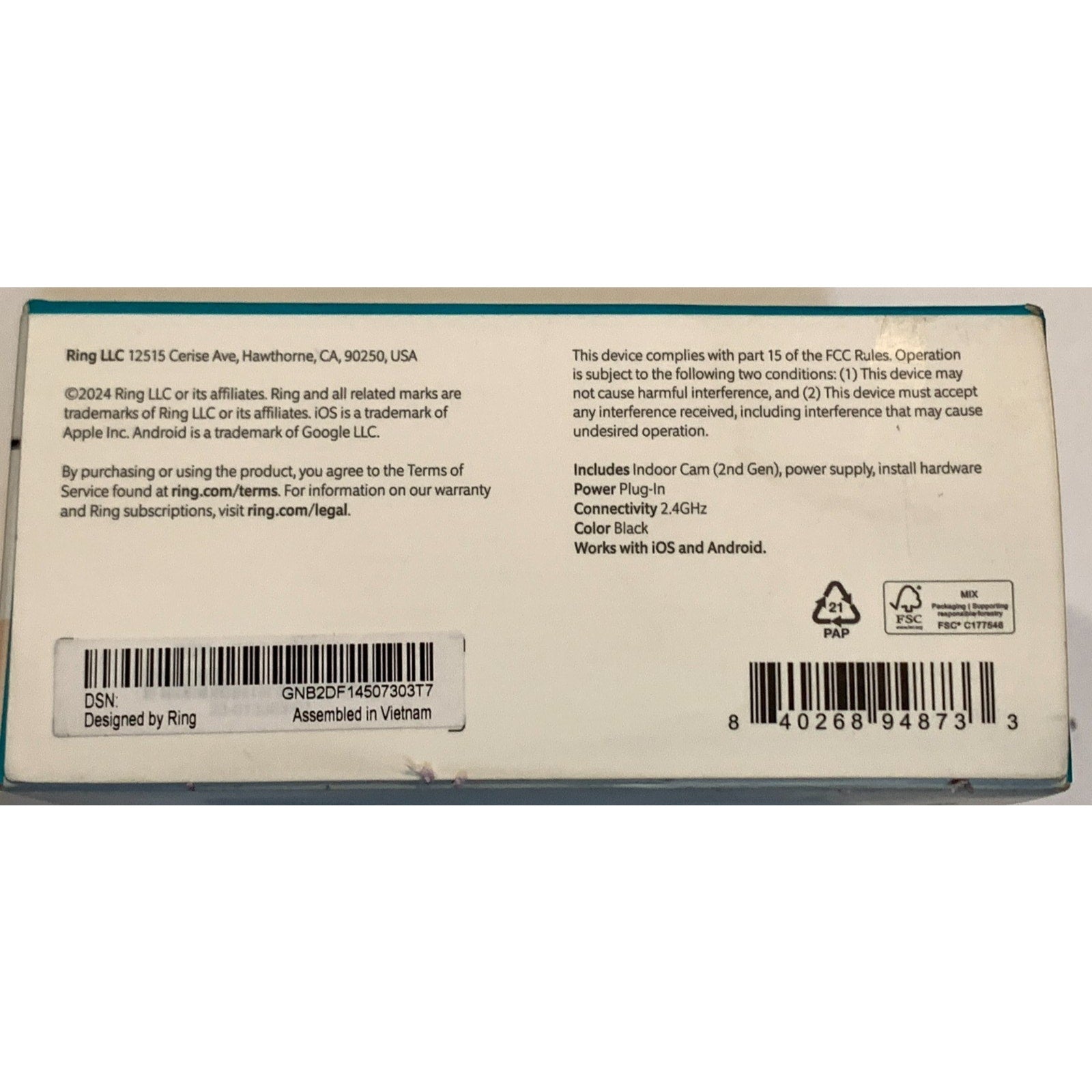 Ring Indoor Cam (2nd Gen) Plug-In – 1080p HD Security Camera – Sealed Box