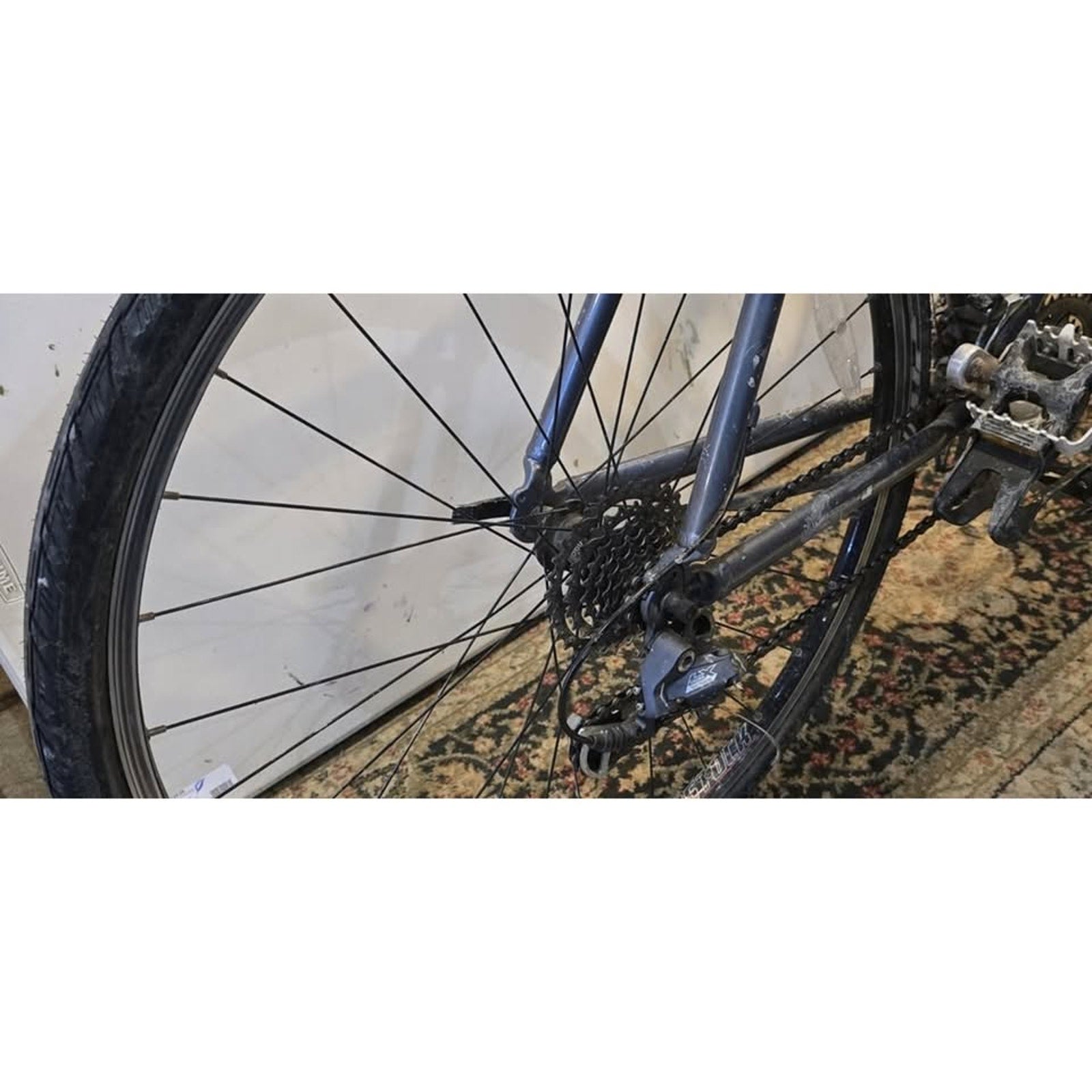 The Trek 7500 Multitrack Hybrid Bike with a 22" frame, 700c wheels, and 21-speed drivetrain is a versatile and comfortable ride, perfect for both city streets and light trails. Featuring a lightweight aluminum frame, this bike offers durability and agility, while the suspension fork and seat post help absorb shocks for a smoother ride. The 21-speed Shimano drivetrain ensures reliable shifting and adaptability to various terrains, whether you're climbing hills or cruising on flat paths. With linear-pull brakes for solid stopping power and ergonomic handlebars for added comfort, the Trek 7500 is a great choice for commuters, fitness riders, and weekend adventurers alike.